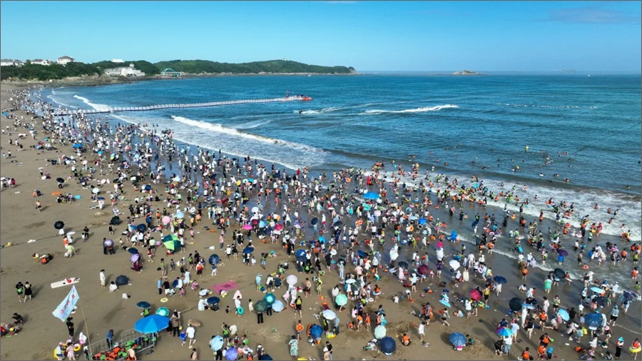 Foto:Turistas fogem do calor do verão na área de Nansha Scenic de Zhujiajian na cidade de Zhoushan, província de Zhejiang, na China. / Future Publishing/Getty Images