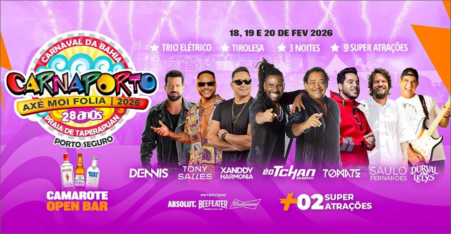 O Carnaporto Axé Moi 2026 acontecerá nos dias 18, 19 e 20 de fevereiro de 2026 na Arena Axé Moi, em Porto Seguro – Bahia, e você não pode ficar de fora!
