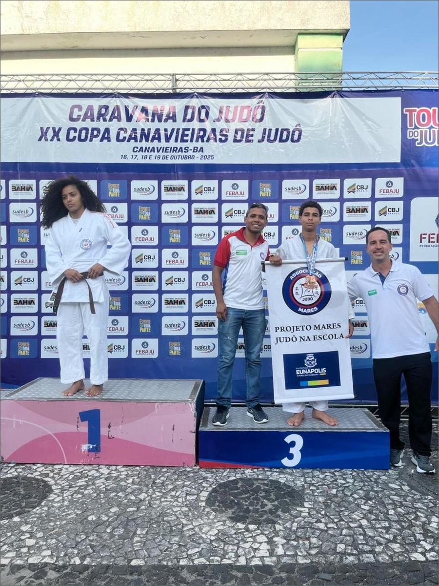 Eunápolis brilhou na 20ª Copa Canavieiras de Judô com a participação dos alunos do Projeto Mares de Judô na Escola, desenvolvido pela Prefeitura em parceria com as Secretarias de Educação e de Cultura, Esportes, Juventude e Lazer. Os estudantes das escolas municipais Paulo Freire, Antônio Batista e Aldeni Pereira conquistaram um total de 42 medalhas, garantindo o 3º lugar geral entre as academias participantes.