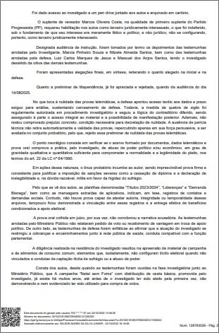 Na ação, o Ministério Público alegava que o parlamentar teria utilizado sua posição para distribuir cestas básicas, intermediar consultas e exames médicos e conceder outros benefícios em troca de apoio político. A defesa, conduzida por Jota Batista, sustentou a nulidade das provas telemáticas e argumentou que não havia elementos concretos que comprovassem qualquer conduta ilícita.