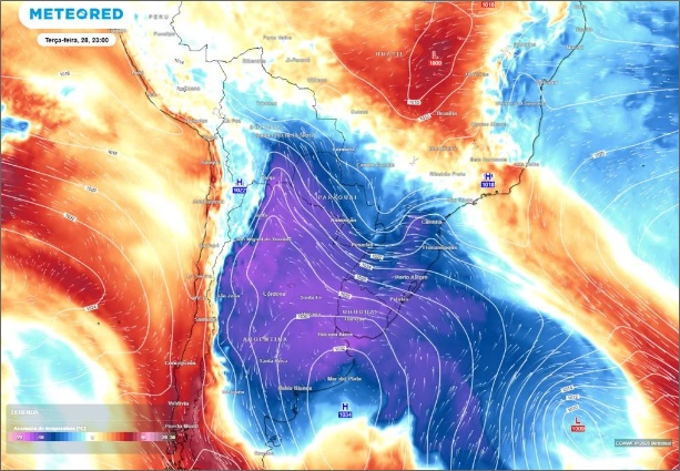 O sistema de alta pressão, o ar polar, não possui grande amplitude ao ponto de conseguir avançar pelo Brasil, isso faz com que o potencial de frio seja menor, mas, mesmo assim, será bastante impactante e incomum para esta época do ano em toda a Região Sul, para o estado do Mato Grosso do Sul e para parte do Sudeste.