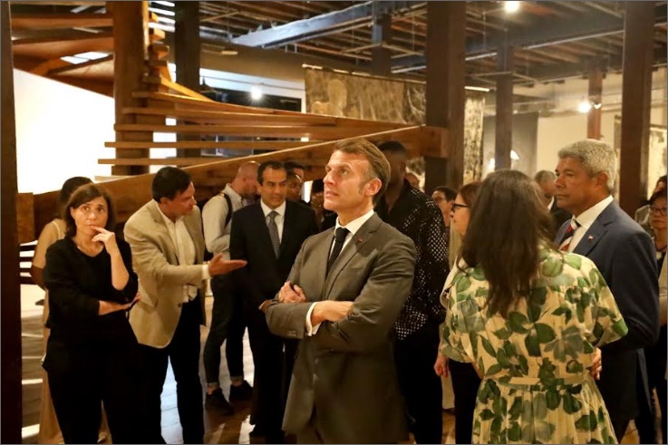 Exposição de Roméo Mivekannin – Macron visitou também a exposição “O Avesso do Tempo”, do artista beninense Roméo Mivekannin, em cartaz no MAM-BA. A mostra, originalmente apresentada no Louvre-Lens, na França, amplia o diálogo entre as instituições e destaca a Bahia como território de memória viva. A visita foi conduzida pelo próprio artista.