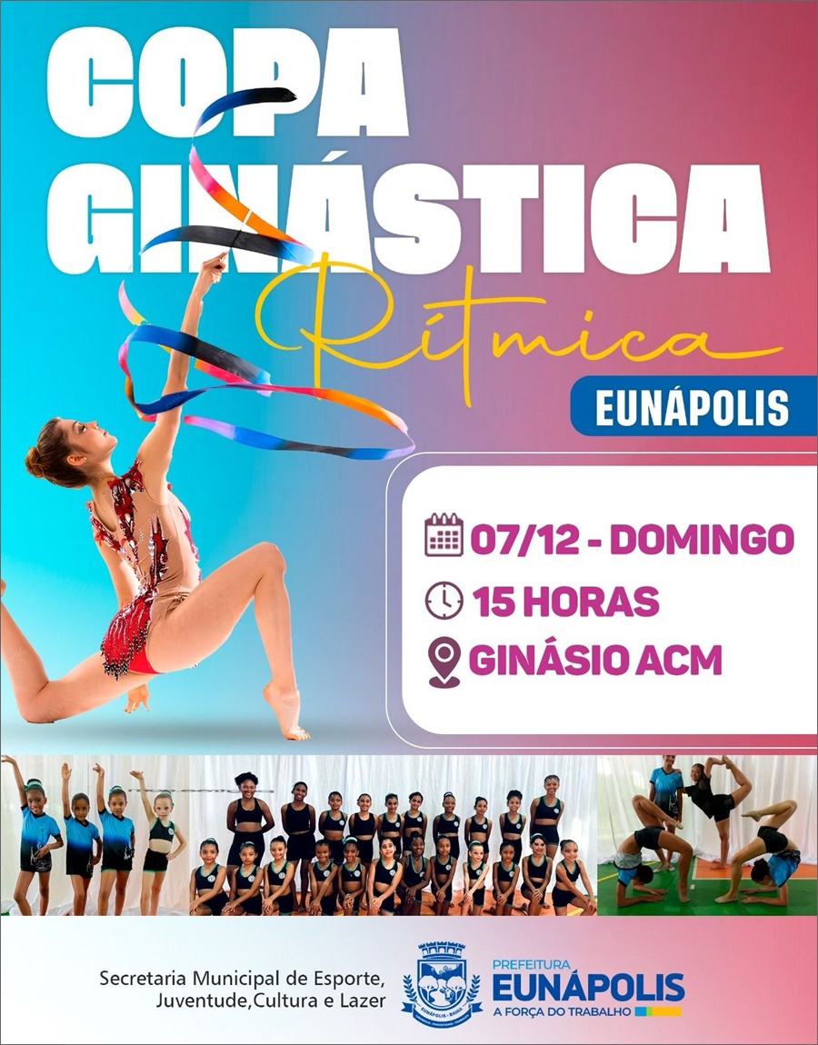 A Prefeitura de Eunápolis, por meio da Secretaria Municipal de Esporte, Juventude, Cultura e Lazer, promove a Copa de Ginástica Rítmica, que acontecerá no Ginásio ACM, no Antares, no domingo (7), a partir das 15h. O evento reunirá 33 ginastas locais e será uma grande oportunidade para revelar novos talentos e incentivar a prática da modalidade no município.