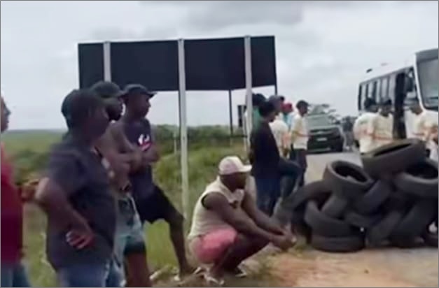 Os caminhoneiros fecharam a BR 101, na manhã desta segunda-feira, 05, próximo ao trevo para a Veracel Celulose, entre os municípios de Eunápolis e Itagimirim.