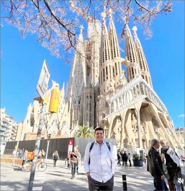 O ex-secretário da Prefeitura de Eunápolis, Paulo Dapé, posta foto diante da Igreja da Sagrada Família, em Barcelona, belíssima basílica católica inacabada projetada por Antoni Gaudí, iniciada em 1882 e famosa por sua arquitetura única que mistura gótico e Art Nouveau.