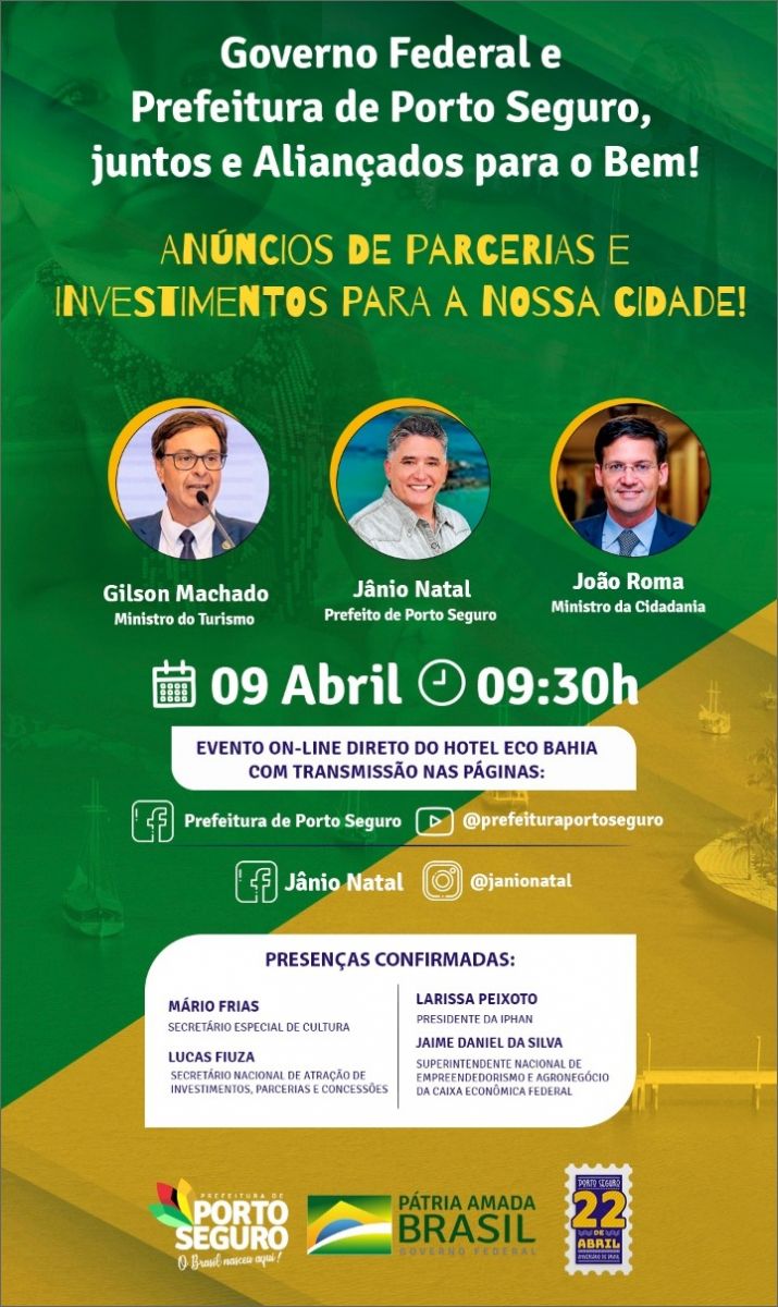 Estarão presentes, além do Prefeito Jânio Natal, os ministros Gilson Machado (Turismo) e João Roma (Cidadania), e outras autoridades de destaque nacional.