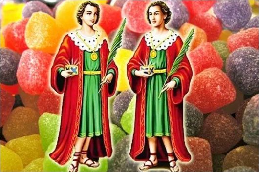 Para o catolicismo, não havia nenhuma ligação entre os irmãos e as crianças ou a distribuição de doces. Essa prática veio da associação que os escravos fizeram de Cosme e Damião a orixás da umbanda e do candomblé: os Ibejis, filhos gêmeos de Xangô e Iansã.