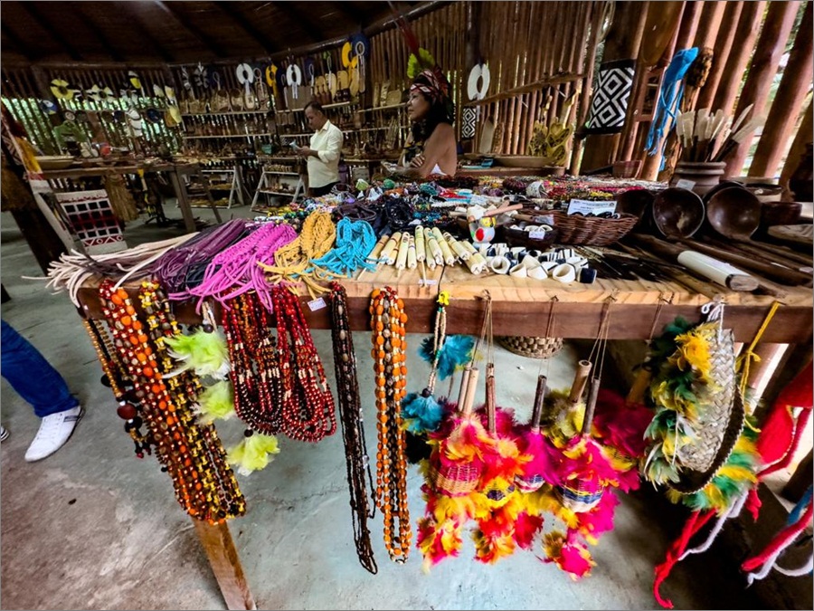 Os visitantes podem saborear a culinária típica, como peixe envolto em folhas de patioba, bolos de aipim e ensopados de raízes com temperos variados. Além disso, podem levar para casa lembranças significativas feitas de sementes, madeira e fibras, conectando-se à herança dos pataxós.