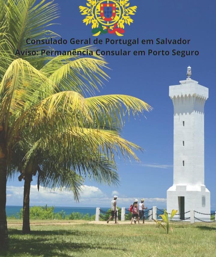 O Consulado Honorário de Portugal em Porto Seguro informa que sobre a Permanência Consular na Cidade Histórica ente as 08h às 18h, na sede do Consulado para emissões de Cartão do Cidadão, Passaporte e Registro Civil.