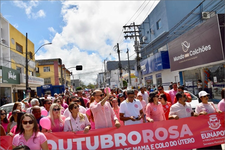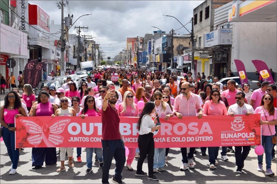 A Prefeitura de Eunápolis deu início, nesta sexta-feira (3), à Campanha Outubro Rosa com uma caminhada que reuniu servidores públicos, profissionais de saúde e moradores. A mobilização marcou o início de um mês dedicado à prevenção e conscientização sobre o câncer de mama e o câncer do colo do útero — duas das doenças que mais afetam mulheres em todo o Brasil.