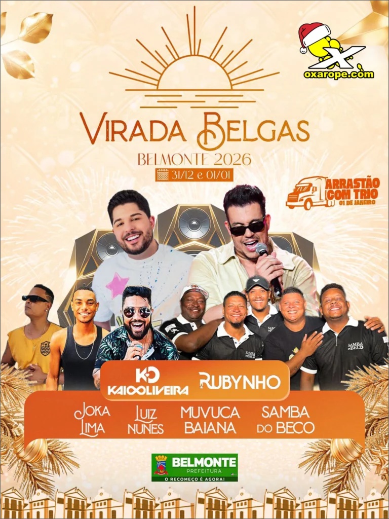 Belmonte já se prepara para receber 2026 em clima de muita música, alegria e celebração. A programação do Réveillon de Belmonte 2026 – Virada Belgas acontece em dois dias e reúne atrações que prometem lotar a cidade e impulsionar o turismo na virada do ano.