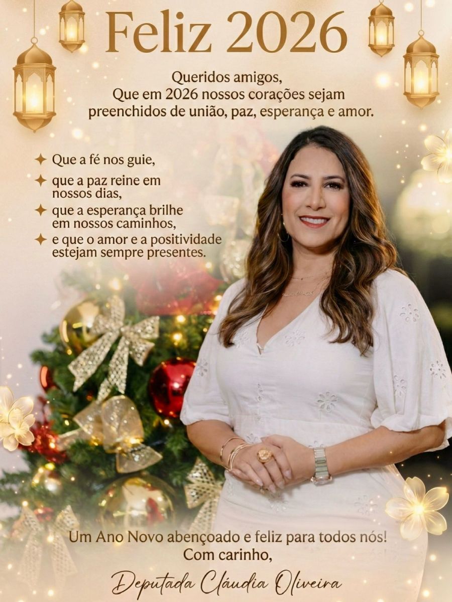 Com a chegada de um novo ciclo, a Deputada Estadual Cláudia Oliveira compartilha uma mensagem de otimismo e renovação com todos os baianos. Em um convite à reflexão e à fraternidade, a parlamentar destaca a importância de mantermos a fé e o amor como guias para o ano que se inicia.