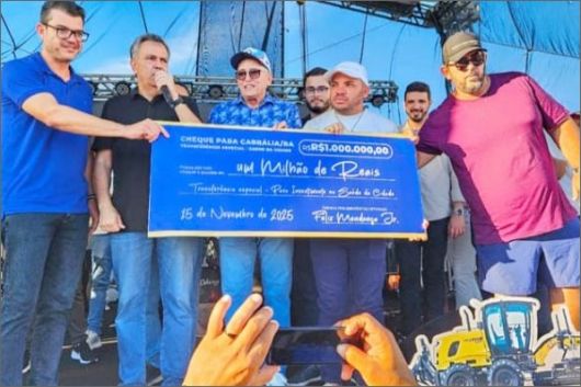 Na imagem em anexo, percebe-se a nítida alegria de Jânio, ao lado de Félix Mendonça, segurando uma réplica do cheque de R$ 1 milhão.