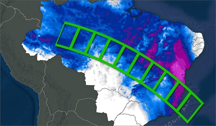 O fenômeno, que chega pela quinta vez ao Brasil em 2026, deve concentrar as áreas de instabilidade sobre porções do Centro-Norte do Sudeste, do Centro-Oeste, além de áreas do Sul do Nordeste, com destaque para a Bahia, e também do Norte. As regiões com maiores volumes previstos são: