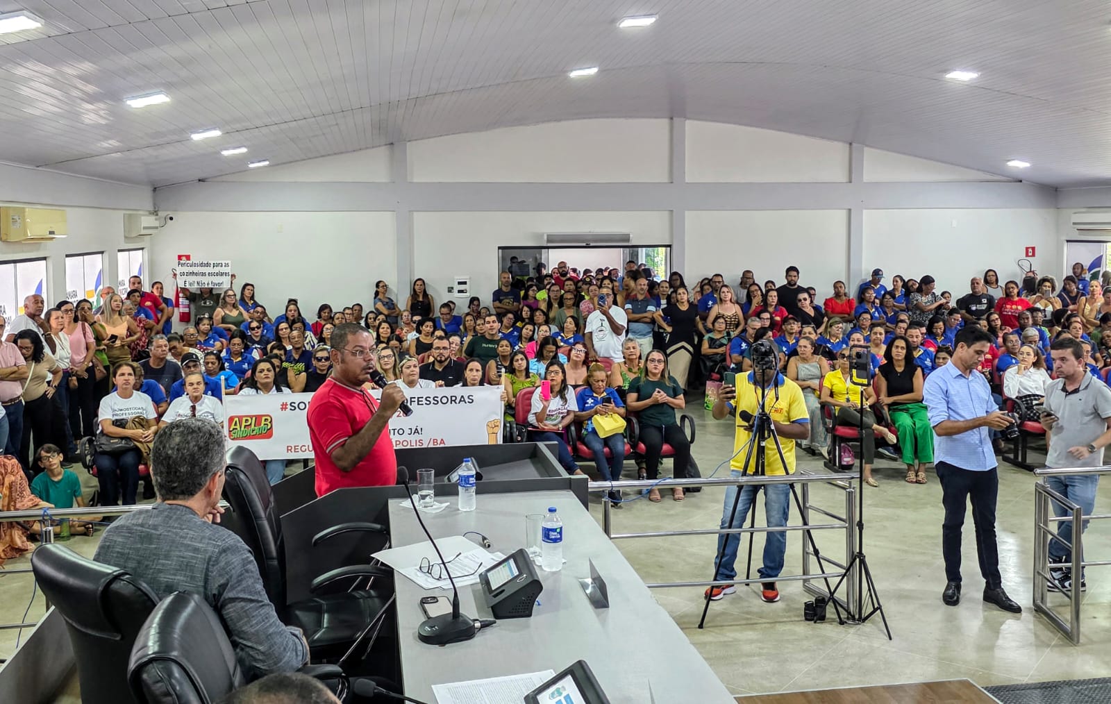 Inscrito para uso da Tribuna Livre, na sessão ordinária que antecedeu às duas extraordinárias, o presidente da APLB/Sindicato, professor Ronaldo Oliveira, disse que o projeto foi enviado pela Prefeitura sem diálogo com a classe. Em sua fala, o líder sindical lamentou a condução do Executivo Municipal. Segundo ele, sem diálogo “com quem faz a educação pública funcionar”.