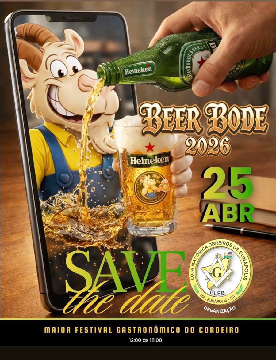 O evento Beer Bode, festa já tradicional em Eunápolis, realizada anualmente pela Loja Maçônica Obreiros de Eunápolis, tem data marcada este ano para o dia 25 de abril.